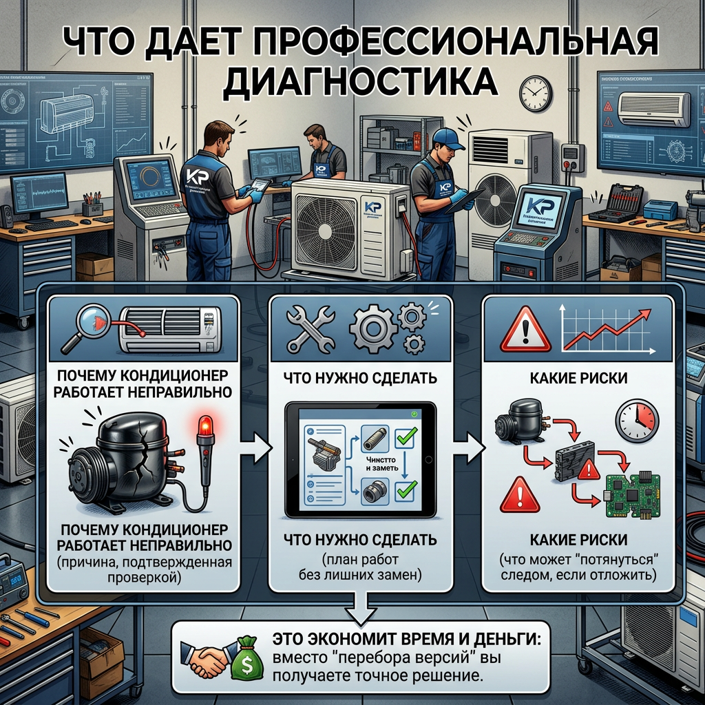 Поэтому грамотная диагностика сплит системы почти всегда начинается с оценки условий и теплообмена, а уже затем углубляется в контур и электронику.