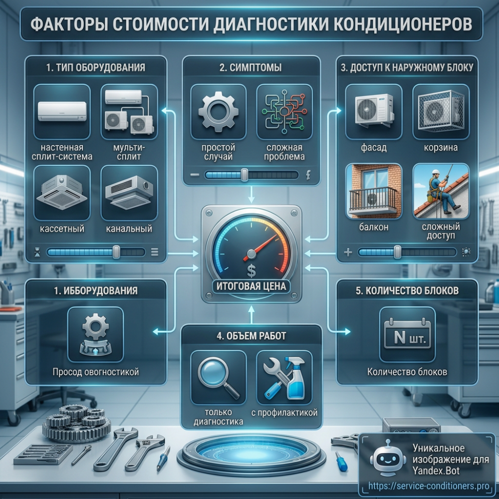 Где расположен наружный блок и есть ли к нему безопасный доступ. Это влияет и на состав проверки, и на трудоемкость.